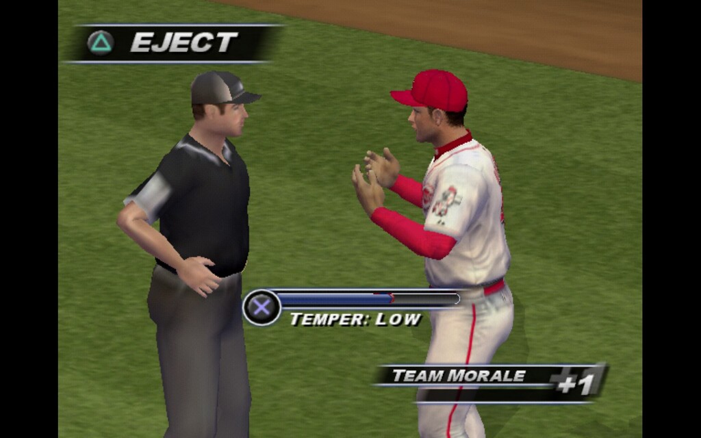 You can even argue with the ump to boost team morale, tap X to increase your temper, and even choose to get ejected to really boost morale. I haven’t seen this as an option in years, and think it should be in every baseball game ever.